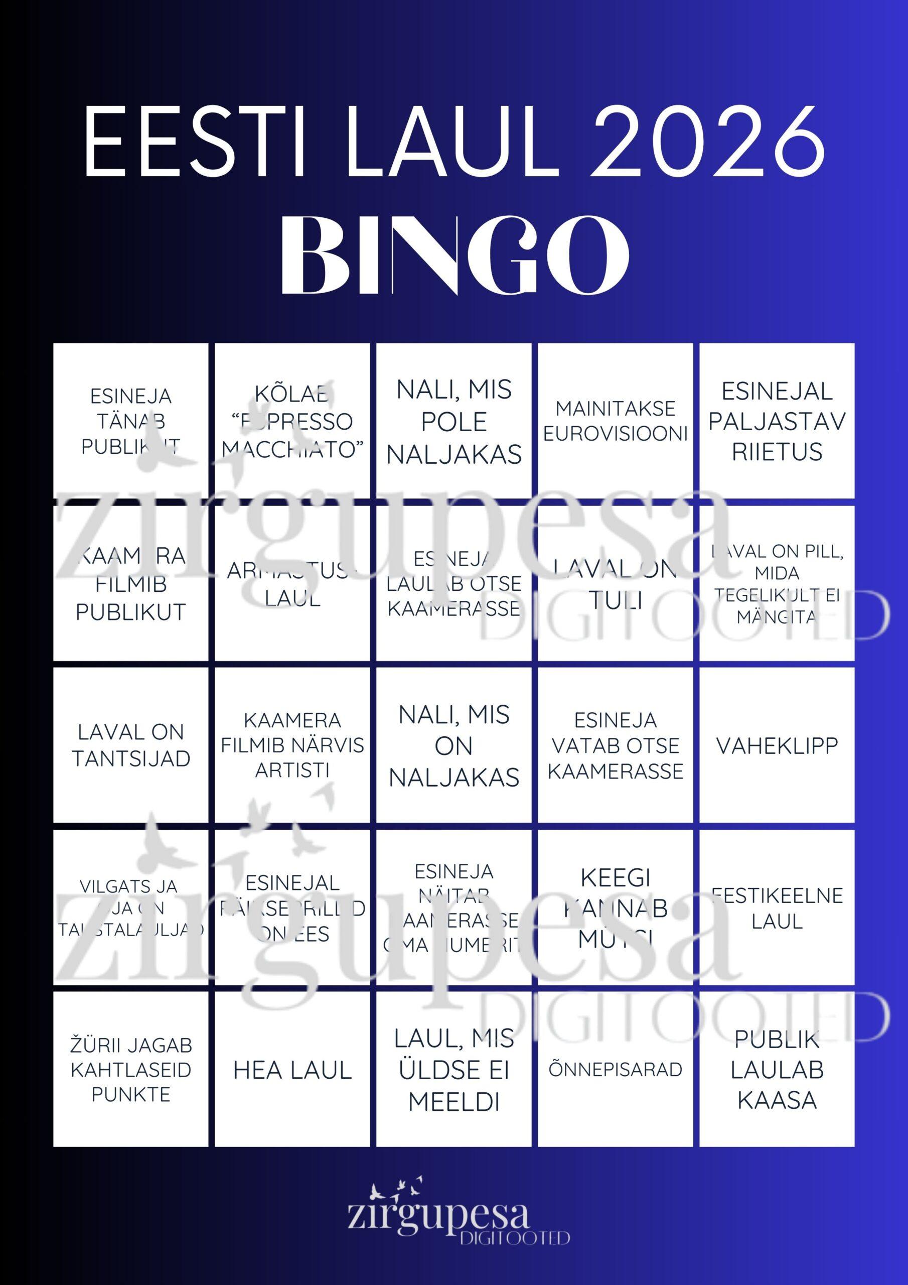 Eesti Laul 2026 BINGO, prinditav