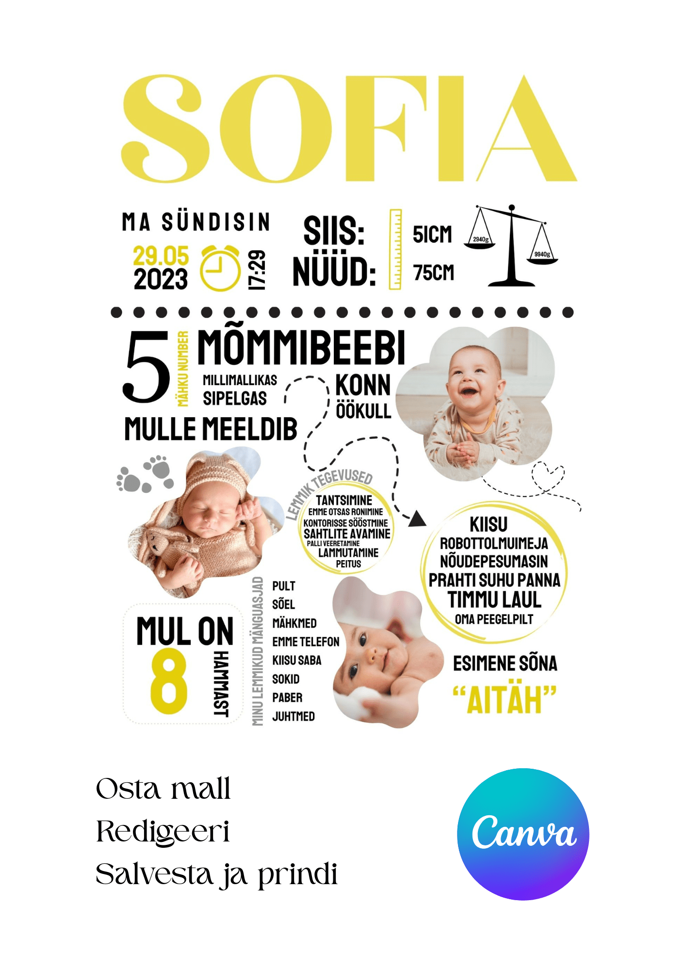 Tähista oma lapse esimest eluaastat erilise ja personaalse plakatiga! 💛 See armas ja stiilne plakat aitab sul talletada kõik kõige olulisemad mälestused lapse esimesest aastast ühele kaunile kujundusele.