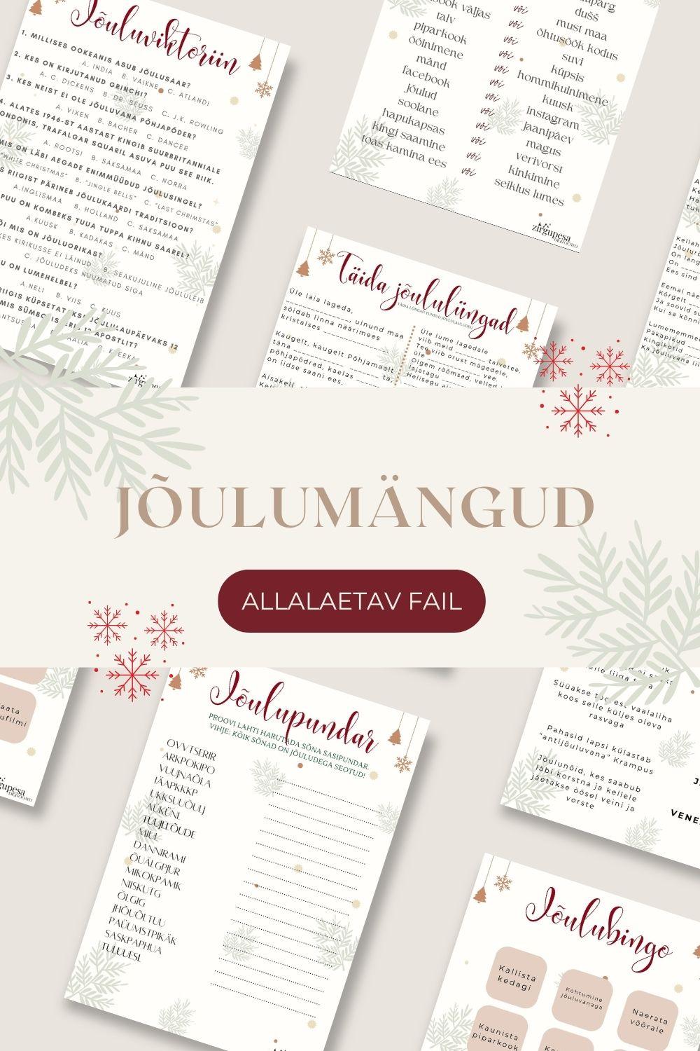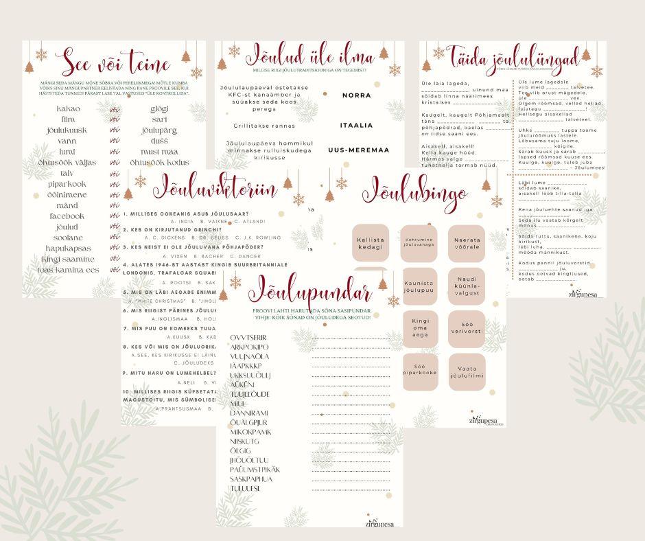 Jõulumängude komplekt, prinditav